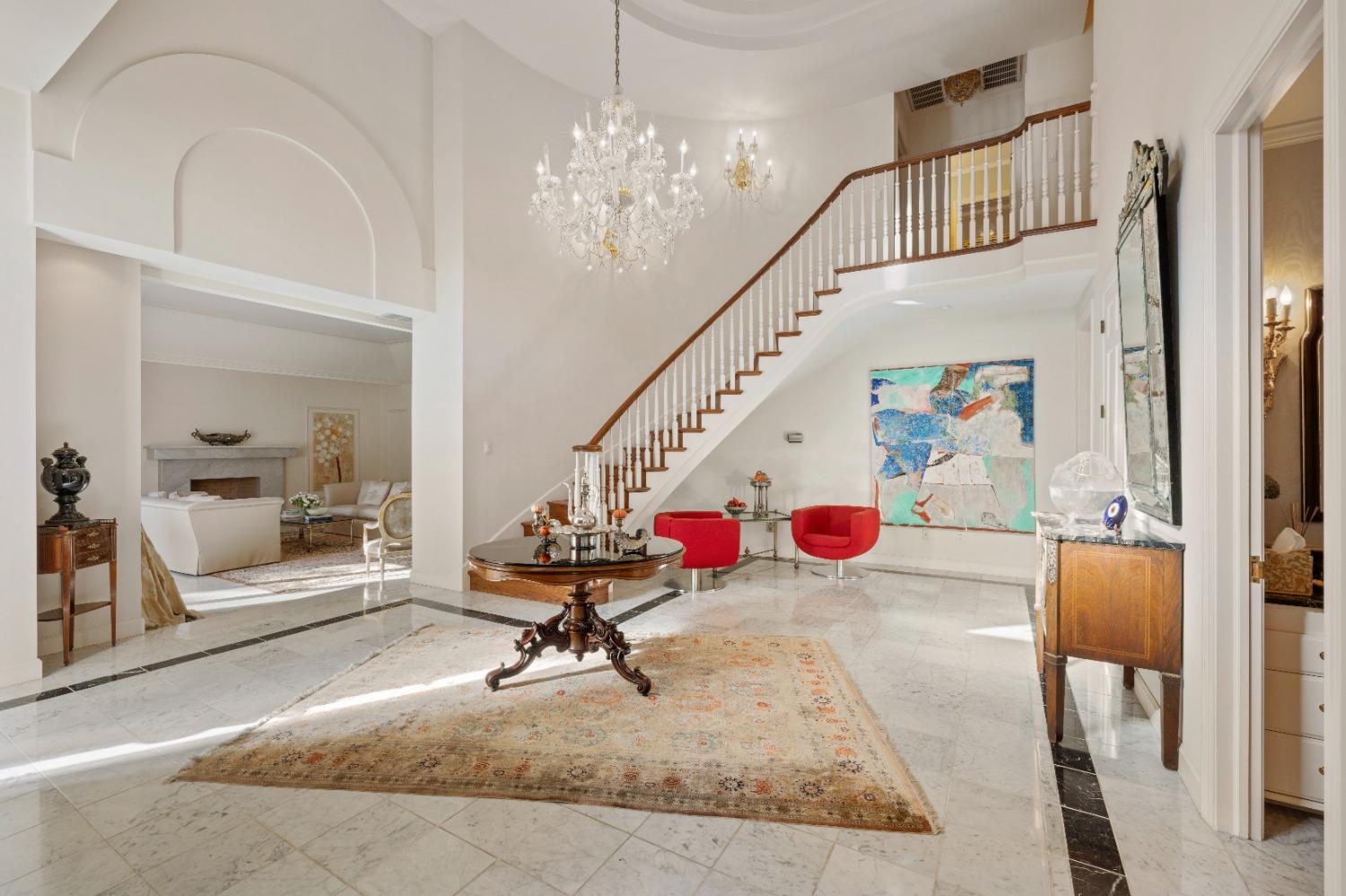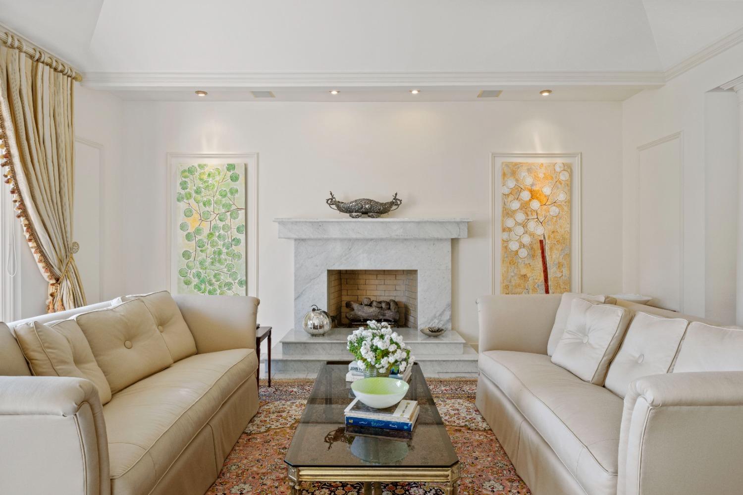 The spacious primary suite is a retreat in itself, featuring a fireplace, a sitting area, and a private balcony that overlooks the backyard pool. Lavish maple and hardwood finishes, along with stone flooring, enhance the interior, complemented by coffered and trey ceilings, French doors, and custom-built in’s throughout the property. A notable feature is the existing water well, providing top-quality, tested water to the entire property and eliminating the need for a water bill. With a separate entrance, the downstairs unit offers added privacy and convenience. The outdoor space is designed for enjoyment, featuring a multi-purpose sport court, a luxurious pool and jacuzzi, and an external pool bathroom. The mature garden is adorned with fruit trees, adding a touch of natural beauty to the surroundings. This exceptional home is truly a must-see, offering a perfect blend of functionality and elegance.